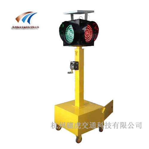 移动交通信号灯无需电源,将太阳能转换成电能,人工设置自动控制发光体闪烁模式,使LED自动发光,并可应急市电充电。
